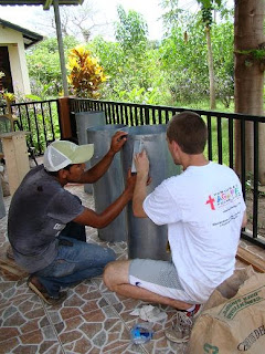 Tuesday–Greetings to all blog followers from around the world. Today was an eventful day for the team down in Quimistan. We had scheduled to meet with several of the men from Tejeras to teach them the process of bio sand filter construction, so we left early this morning to buy sheet metal to make diffusers, wire screen to strengthen our filters, and more concrete. The men were supposed to show up around 8:30, but 10:00 rolled around and no one from Tejeras had shown up. Despite the men from Tejeras not showing up, we had a surprise visit from a man named Rigoberto (Rigo), the master builder that constructed most of Martha’s villa. He said the Martha had asked him to come by to learn about filters. It’s kind of funny. We were supposed to be teaching the Hondurans how to build filters, but Rigo actually ended up teaching us a lot. He helped us design a mold for the filter lids and gave us some tips on how to avoid some of the problems that we had had with the two previous filters we made. We optimistically await the outcome of our filters with Rigo’s methods implemented. At the end of the day, we concluded that God must have sent us what we needed. We were still learning to work with Honduran materials and weren’t quite ready to teach, so we instead got someone who could teach us.