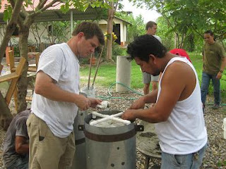 Tuesday–Greetings to all blog followers from around the world. Today was an eventful day for the team down in Quimistan. We had scheduled to meet with several of the men from Tejeras to teach them the process of bio sand filter construction, so we left early this morning to buy sheet metal to make diffusers, wire screen to strengthen our filters, and more concrete. The men were supposed to show up around 8:30, but 10:00 rolled around and no one from Tejeras had shown up. Despite the men from Tejeras not showing up, we had a surprise visit from a man named Rigoberto (Rigo), the master builder that constructed most of Martha’s villa. He said the Martha had asked him to come by to learn about filters. It’s kind of funny. We were supposed to be teaching the Hondurans how to build filters, but Rigo actually ended up teaching us a lot. He helped us design a mold for the filter lids and gave us some tips on how to avoid some of the problems that we had had with the two previous filters we made. We optimistically await the outcome of our filters with Rigo’s methods implemented. At the end of the day, we concluded that God must have sent us what we needed. We were still learning to work with Honduran materials and weren’t quite ready to teach, so we instead got someone who could teach us.