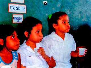 The photo here shows three of more than a thousand students who were provided fluoride treatments last year to improve their dental health.