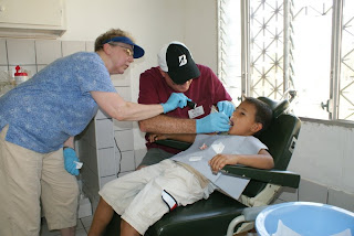 Our morning there started off with a bang, literally. Charley’s portable dental unit was the cause and therefore, wasn’t working. Later, Charley tried it and it was functioning again – thank the Dear Lord! Several power outages changed the schedule, too, (that’s why the job of “flashlight holder” is necessary), so extractions were performed during those times. “Dentistas” Randy and Charlie are very flexible.