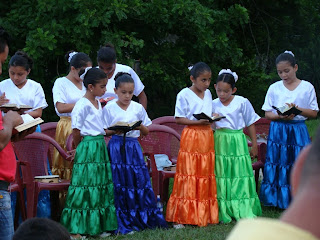 Upon return to Quimistan, Karen helped Gloria prepare the remaining “baleadas” for the AP program, and Sam, the Livingstons, Gloria and Sandra headed to Sra. Umanzor’s kindergarten to serve the snack to the AP students and say our “goodbyes.” Around 5 pm, the entire team went to La Cosecha for an hour and fifteen minutes of prayer, praise, and worship music followed by another hour and 15 minutes of teaching. Although the skies were cloudy and rain could be seen in the distance, we were able to enjoy the cooler evening air and remain outside for the entire service. Although the service was conducted totally in Spanish, we were nonetheless able to experience the the joy and presence of the Lord as we clapped, prayed, and raised hands in worship together with our brothers and sisters in Christ.
