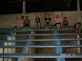 This evening we went to deliver the food to the highway children, which is always such a humbling experience, and then went to the stadium to watch Nelson and Rigo’s soccer game. However, right as we got to the stadium, it began raining and the electricity went out. After many minutes and much persuasion for the opposing team to stay, the electricity came back and the game began. I’m pretty sure all of Quimistan will be talking about those crazy gringos at the futbol game, but it will be worth it. I don’t think anyone has ever cheered that loud…or cheered that much!