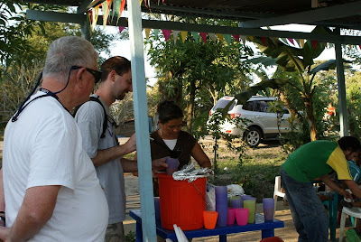 We visited the highway community of Tejeras for the Friday evening feeding session. There were about 50-60 children and a few mothers there. As usual, the children were all seated and waiting patiently to be served. Their meal consisted of tortillas with beans and meat, and a glass of juice. Each started with 2 tortillas, and I saw several children put half their meal aside to take home for someone else or for later consumption. Many came back to get a third tortilla. It was all very organized and orderly.