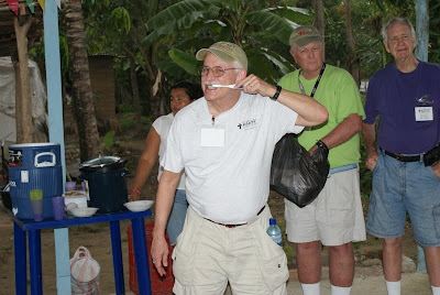 Tommy demonstrated proper tooth brushing technique, and I distributed 60 toothbrush/toothpaste sets.