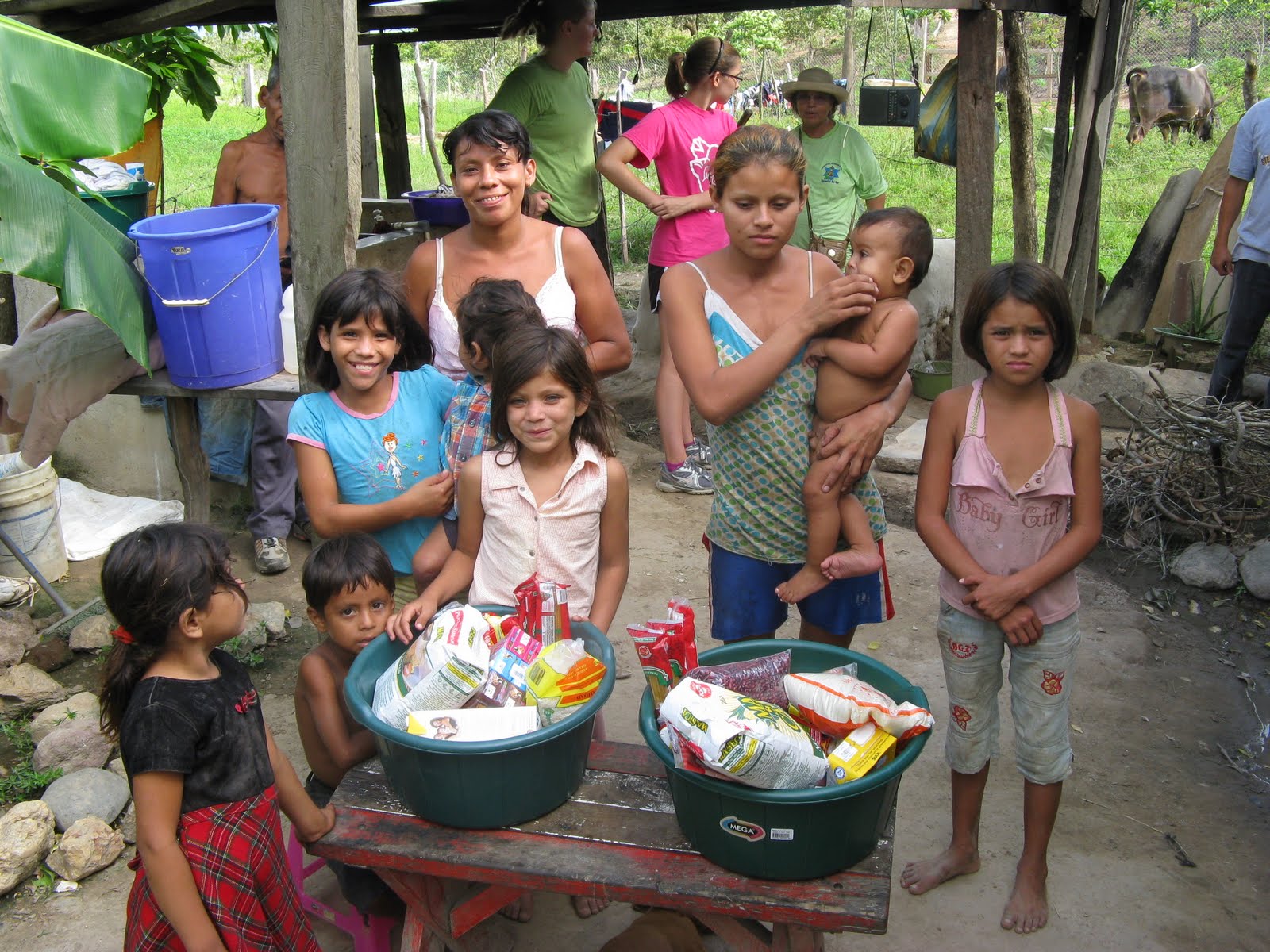 Today was our last full day in Honduras and our final blog! We headed out early to La Moñtanita, after a breakfast of toast, eggs, and bacon. At La Moñtanita we finished the railing and gave the rest of the children de-worming medicine and fluoride. After going to Juana’s house to eat our sandwiches, we headed down the mountain. On the way down, we stopped at a poor family’s house and gave them clothes and balls. Jeff and Maynor also gave the 6 children and the dad de-worming medicine and fluoride. Before heading back to the compound, we stopped at the supermarket to pick up some macaroni and cheese to take back to the United States. Unfortunately they didn’t carry it. We arrived back at the compound and picked up Martha to go to the grocery store. There we bought food for 3 families, and we delivered it to the families. They were very appreciative of the food. Then we went to check on the progress of Sandra’s new house. Progress had been made. We helped shovel dirt in the backyard, until the rain came. On the way back to the compound, we stopped to pick up Topogigios (Honduran popsicles). We came back to the compound for our last dinner. We had chicken and beef enchiladas and macaroni and cheese. After dinner we said goodbye to our new friends on the compound and Sandra’s son Abner. Now we are all packing to go home tomorrow. This trip has impacted us in many different ways. We now appreciate more what God has given us. It has opened our eyes about how blessed we are. We hope that we carry our experiences back home and help others find God’s love. We hope you guys have enjoyed the blog. Look forward to hearing from us next year!