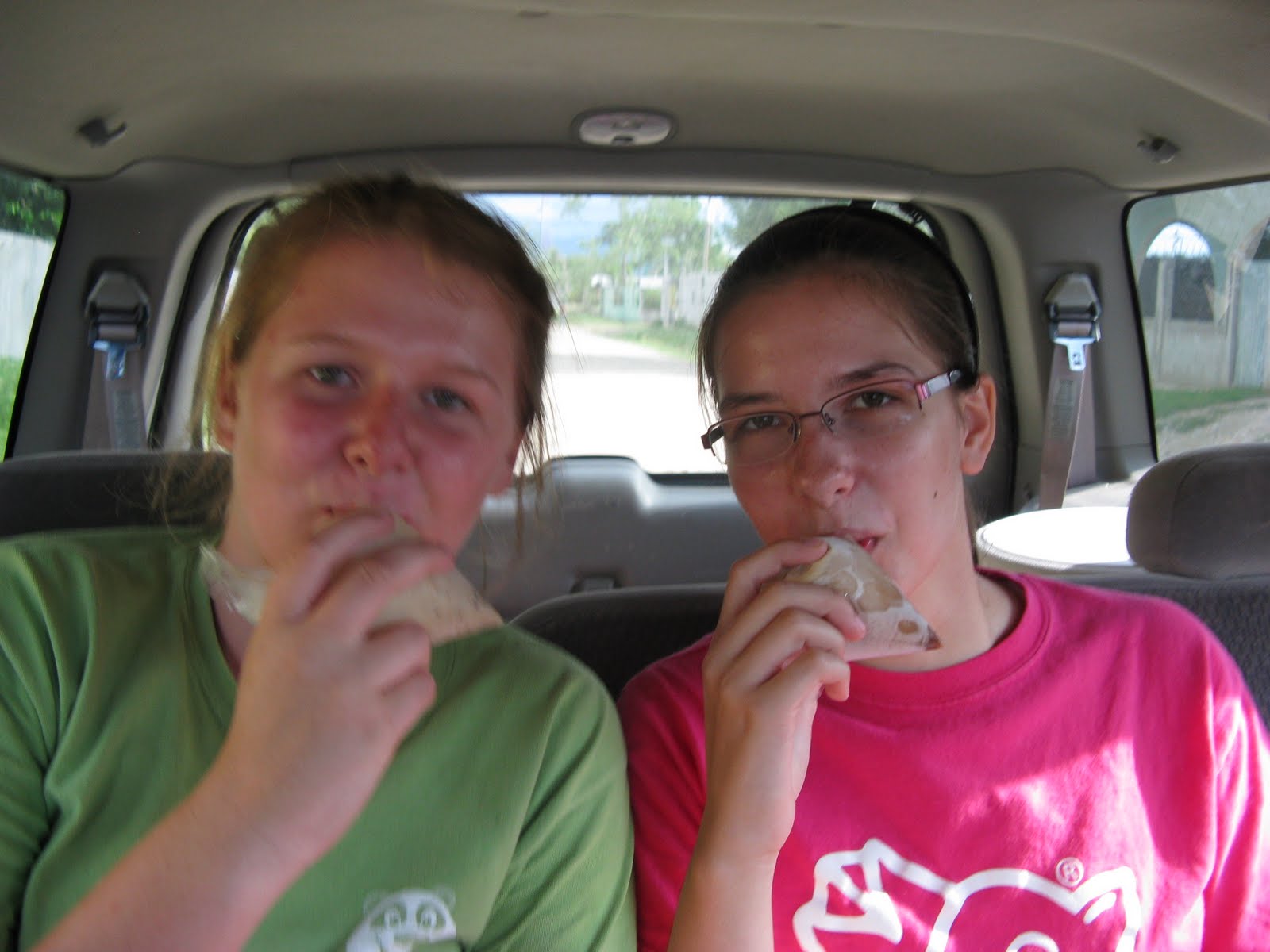| Abby and Anna eating Topogigios! |