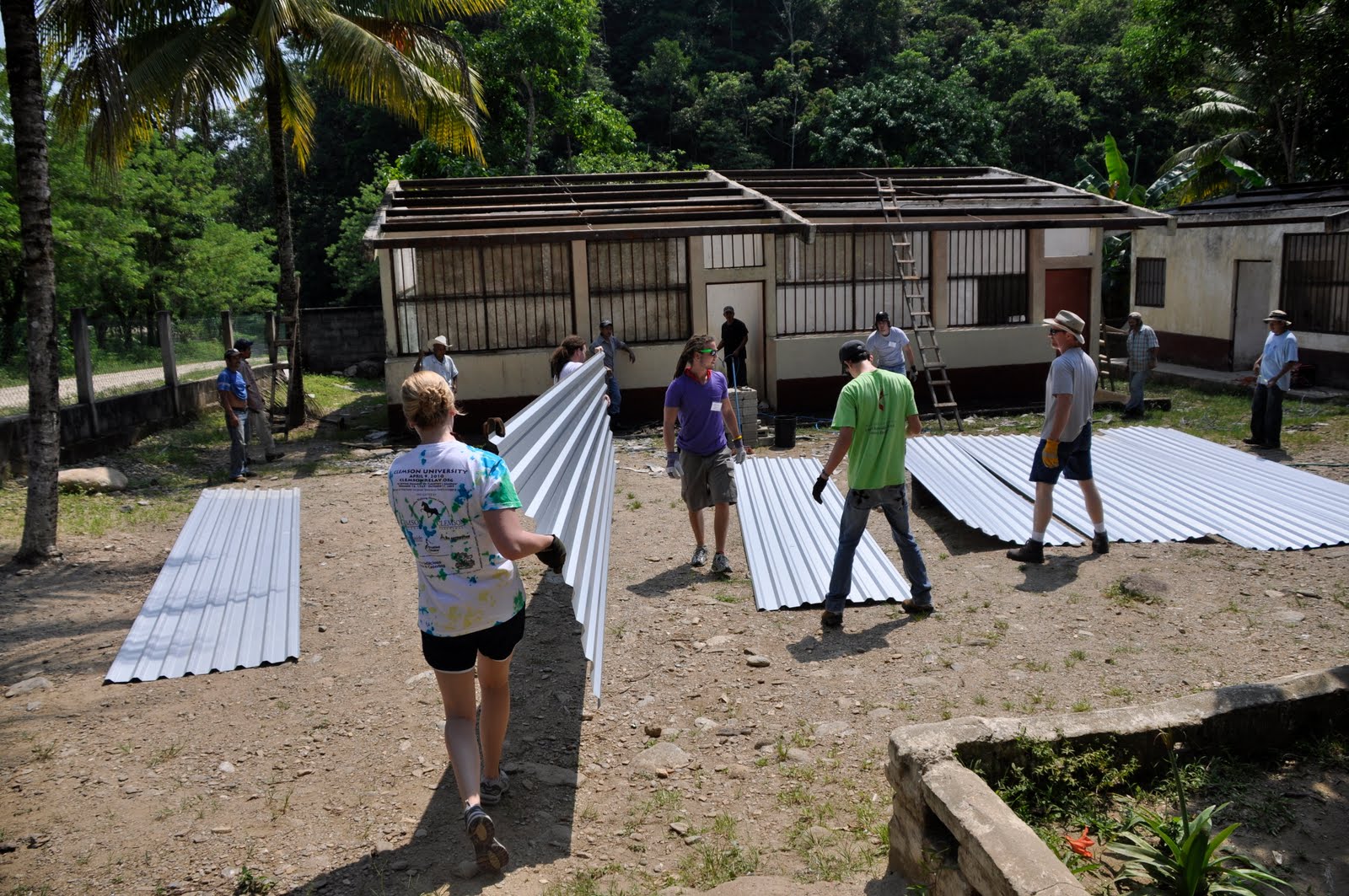 Our job was to put a roof on two school buildings, and basically move everything out of the old school building into the new ones (books, chairs, benches, books, etc). The buildings we worked on already had concrete structures and metal roof trusses. All we needed to do was put up the roofs.