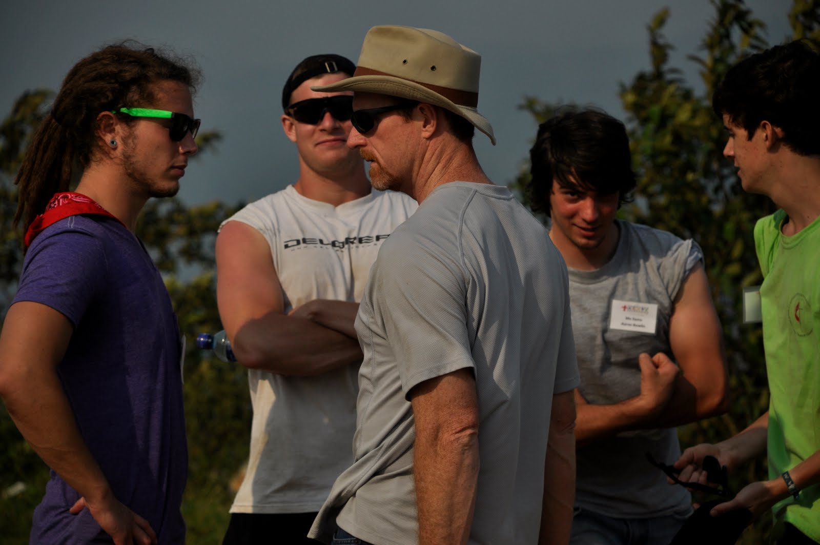 So far heat has been a major issue on this trip. Highs are in the upper 90’s/lower 100’s, and lows are in the mid to upper 70’s. Needless to say, working up on an aluminum roof during the hottest part of the day was an exhausting experience, but, for a group of well trained, hardy, conditioned veterans, a task we met with neither fear nor hesitation. We jumped on it like a spider monkey.