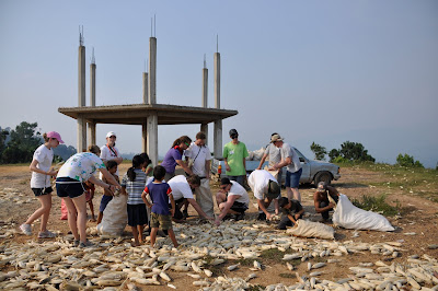 On the way back down the mountain, we stopped at a lookout and got out to look at the vast stretches of mountains. At the lookout, there was a family that had laid their corn out to dry. At some point, the family started gathering up their corn and placing it in sacks to take back to their homes and grind up to make tortillas out of. The team spent a good deal of time helping the family gather up their corn. Then we finished the trek down the mountain, which due to bumps, constant turns, and sporadic speed increases, led to some cases of nausea and car sickness.