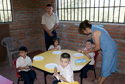 Following breakfast, the four of us headed out for Santa Clara. Our first stop was the new “White Dove School” for 3-year-olds, pre-k, kindergarten, and first grade. Suyapa and 4 other locals have trained in San Pedro Sula to become certified to teach. The classrooms can be seen behind the rising brick building, which is to be the new church.