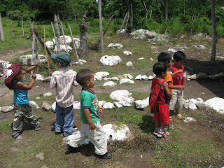 Just as we were finishing our lunch, El Abuelo came over carrying plates of chicken, rice, tortillas, beans, and salad, cooked home-style by the family whose house we are helping to build. El Abuelo was hosting a group of school children from San Pedro Sula, and had made arrangements for their lunch, which we profited from also.