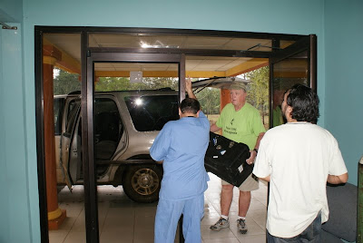 Our primary job for Dane, George, and Tommy today was to take all the dental supplies to the new hospital and set up for the dentists, as they made their way to Quimistan today. This is a very nice facility, with 2 chairs that actually move up and down, and even an air conditioner!