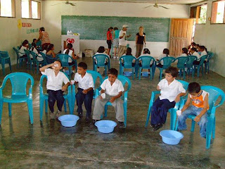 une, and Ken went to Quimistan Elementary to distribute anti-parasitic medications (banana flavored!! Que rico!) and fluoride treatments to about 300 children. By the end of the day the girls and boys were competing for the loudest “Hola!”, and all members of the team were blessed by their enthusiasm. Maynor and Arturo were invaluable helpers in the organization and instruction of the activities.