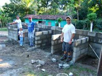 In an earlier posting, we mentioned that some of the men in the January team worked at the Jicaro School, building a new facility with three toilets and a shower. Here are some scenes from that work.