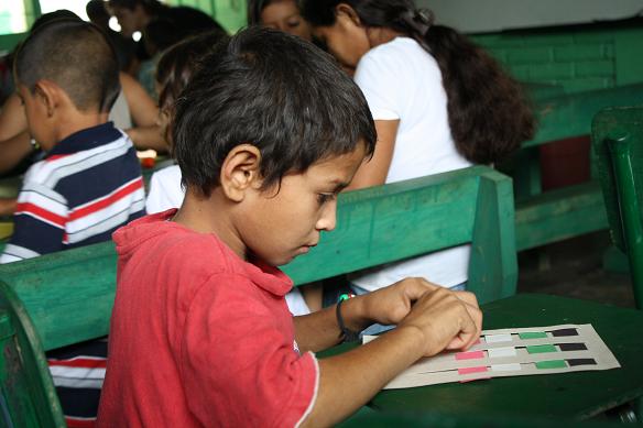 We awoke to the light drizzle of rain and the depressing news that our plans might have to be rescheduled. This, however, was not the case. After breakfast, we called and Maynor confirmed that we were able to make the drive to fly-infested La Montanita, so we loaded up in the car and stopped by the office to pick up Carlos and Maynor. The half hour drive to La Montanita went smoothly although it was muddy, bumpy, and like every other mountain road, curvy. We arrived and set up for the Vacation Bible School at the local elementary school. At 10 we started the program and it lasted until about 12.
