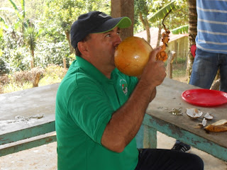 Our efforts were not without reward. A boy, who could not have been more than 10, scaled a coconut tree well past the cluster of coconuts and “kicked” a dozen or so to the ground. He then slid down and, picking up his machete, proceeded to hack them open. All of us, including Dr. Tino as you can see in the photo, enjoyed fresh coconut water (we call it milk, they call it water) and pulp. We learned from our translator, Daniel, that there are three stages in the maturation of a coconut. In the first, the nut’s outer husk is green. At this stage, the milk is very sweet. The beginning of the pulp inside is jelly-like and sort of sweet. Maynor really enjoyed scooping out some for him to enjoy and Allen to sample. At the second stage, the outer husk is yellow with dark spots. Then, the pulp is sweet; the milk has given up its flavor to the pulp. All of us enjoyed both the pulp and the milk of the ‘tree-fresh’ coconut. The third stage,which we did not get to experience, comes later when the coconut begins to germinate. The milk and pulp form a “frothy” texture and is as sweet as honey, according to Daniel.