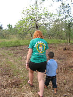 While we were there, Tracey developed a relationship to one of the girls, an eight-year-old named Reina Isabella (Queen Isabella for you non-Spanish-speakers).  Reina was very shy and withdrawn.  Her clothes were ill-fitting and torn.  The other children made fun of her.  Reina attached herself to Tracey and stayed by her side silently throughout the morning.  When it came time to go, Tracey was asking about how best to sponsor her.  She and a couple others walked Reina down the street to the SuperMercado to buy her a new uniform.  Reina ate lunch with us, and proudly showed off her new shoes, one with buckles that worked and actually fit. Tomorrow, Reina will go to school proudly wearing her new clothes.  Of course, this was not in our plans for the day, but it was all part of  His.   And who knows, Tracey may just have adopted a child.  For sure, she has fallen in love.