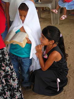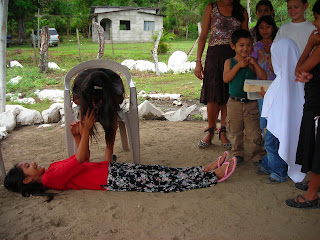 Sunday school was followed by the celebration and southern tradition of ‘Pounding’….giving of gifts which include pounds of sugar, flour, beans, etc. and a family Bible to Guillermo and his family as they are about to move into their new home.