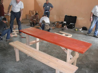 P.S. As we worked on the tables, we were very surprised to hear loud music coming from a small truck. We were even more surprised to learn that in was an old-fashioned ice cream truck. The ice cream break was great!