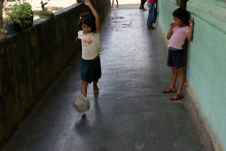 Yesterday, while visiting Texoxingales (or Teo for short), I enjoyed trading kicks with an 8-year-old soccer player until I had to plead exhaustion and go back to blowing bubbles, a lot less strenuous. Note how well the school’s ball has been used. Next time, I’ll have to take them one, unless someone beats me to it.