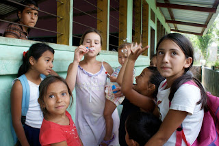 Yesterday, while visiting Texoxingales (or Teo for short), I enjoyed trading kicks with an 8-year-old soccer player until I had to plead exhaustion and go back to blowing bubbles, a lot less strenuous. Note how well the school’s ball has been used. Next time, I’ll have to take them one, unless someone beats me to it.