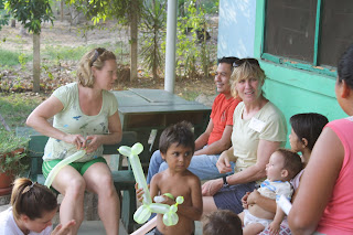 Straight from the school, we packed our lunch and went to La Montanita. Our purpose there was to visit the group of ladies who sew the tortilla cloths. We picked up the cloths from a previous order and ordered more to sell at home. All of the profits will go back to the women. It was neat to hear the ladies talk about their work. Also, their children gathered around so some of us played with bubbles.