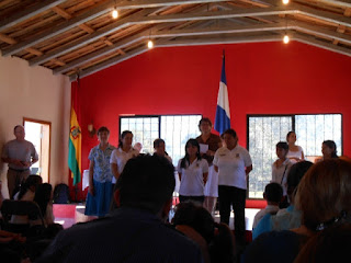 Blown away! That’s what we were this morning when we joined the ceremony opening the new school year at the White Dove School in Santa Clara. More than 60 students were there in their uniforms and eager countenances. One of the teachers served as emcee, speaking both in Spanish and English for the standing-room-only crowd in the multipurpose room. Following an opening prayer in unison by the students and the school director, the student body led the audience in singing the Honduran national anthem and the pledge of allegiance to the Honduran flag.
