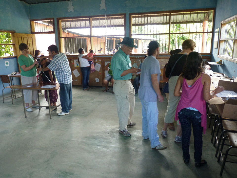 Friday turned out to be a long, tiring but rewarding day. We spent the morning and afternoon at the Tejeras school. It started with eyeglass measuring using the focometer and then fitting adults with glasses. The new storage system for dispensing eyeglasses worked very well. While this was going on, the children went through the handwashing, deworming, tooth brushing and fluoride treatment stations.