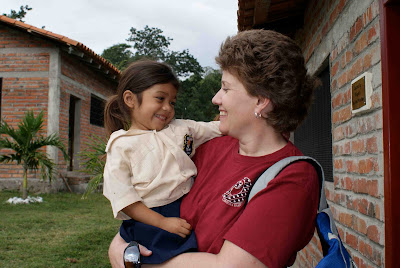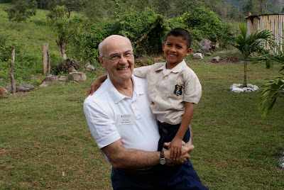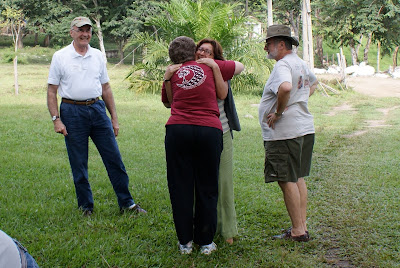 Thursday we were swarmed by smiling kids looking for hugs. What a great welcome we received at White Dove school in Santa Clara! Following the pathway lined by a block-long chain of whitewashed rocks alongside the road, we had parked and climbed out like clowns from a car in the circus, to be welcomed by Suyapa. The students who were there on the last day of exams behaved politely and with discipline as they are being taught, but they simply were not able to withstand being picked up and hugged and tickled and loved.