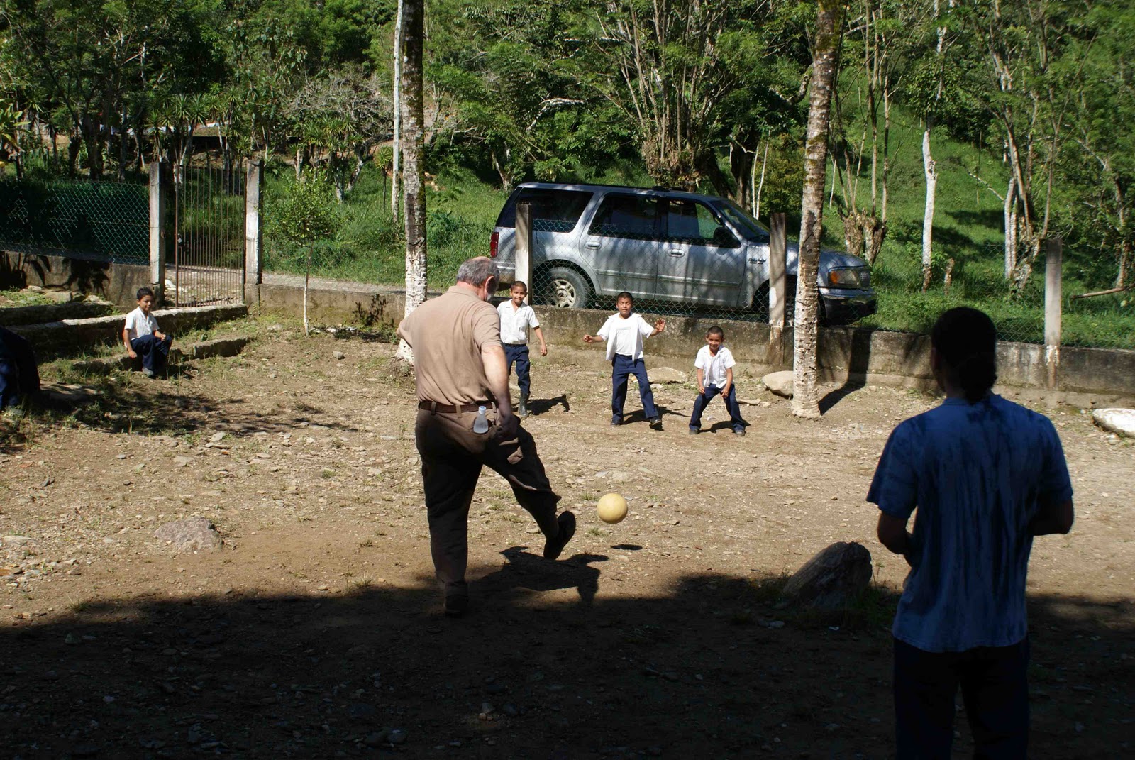 During recess, each of our team members had opportunity to display his style playing soccer (using a hollow plastic ball) with a few of the boys. I can only imagine that these boys and the other children watching don’t get this much humorous entertainment very often!