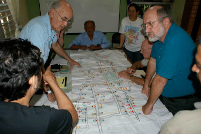 On Wednesday morning, we met with the IHDER people, who have performed research on some of the villages where we have worked.  Our intent was to learn about these projects and the progress that has been made on them, and gain some insight into what they have learned.  They were forthcoming about the problems which they have encountered in collecting information and expectation for completion of the last data gathering and report preparation in the next month for “Teocingales”, as it is spelled on their map.  We also saw their office facilities, which are in a house in Quimistan.