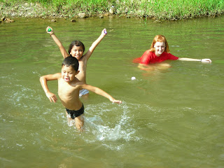 This day, we took these kids on their first picnic….our first in a cow pasture. And swam and played in the river.